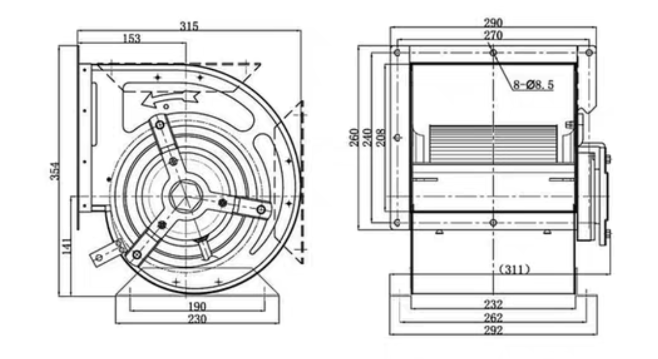 High-Efficiency Impeller: The forward-curved double-inlet blades provide strong airflow with uniform pressure distribution, enhancing overall ventilation performance.